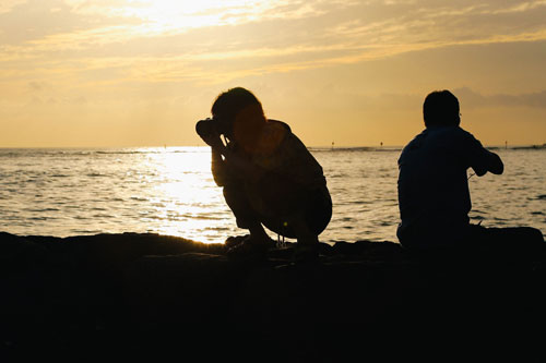 The same scenario will play out outdoors on a sunny day when subjects are placed with the sun brightly lit in their background. The AUTO setting will concentrate on the abundance of sunlight and will leave the subject’s faces deeply in the dark. So in a case like this, also engage the flash and light up the faces of your subjects. Images taken in snow are notorious for this same problem as are pictures taken on a tropical beach.