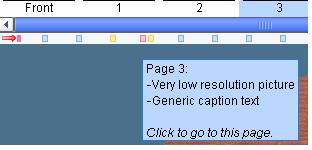 A new bar will appear underneath the photo book pages scrollbar. I everything is 100% fine with your book, the bar will be blank. If however, there are issues with any page, color-coded boxes will appear for those pages with errors.